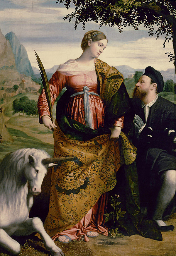 Moretto da Brescia, Saint Justina with the Unicorn, circa 1530 – 1534, oil on panel, 200 × 139 cm